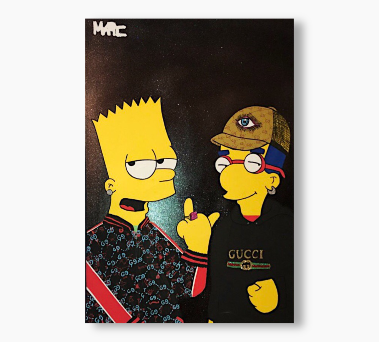 Bart Simpson and his friend kick back in true style, proudly declaring that “Life is Gucci.” With no stress and nothing but good vibes, this painting captures a carefree moment where pop culture meets luxury fashion.